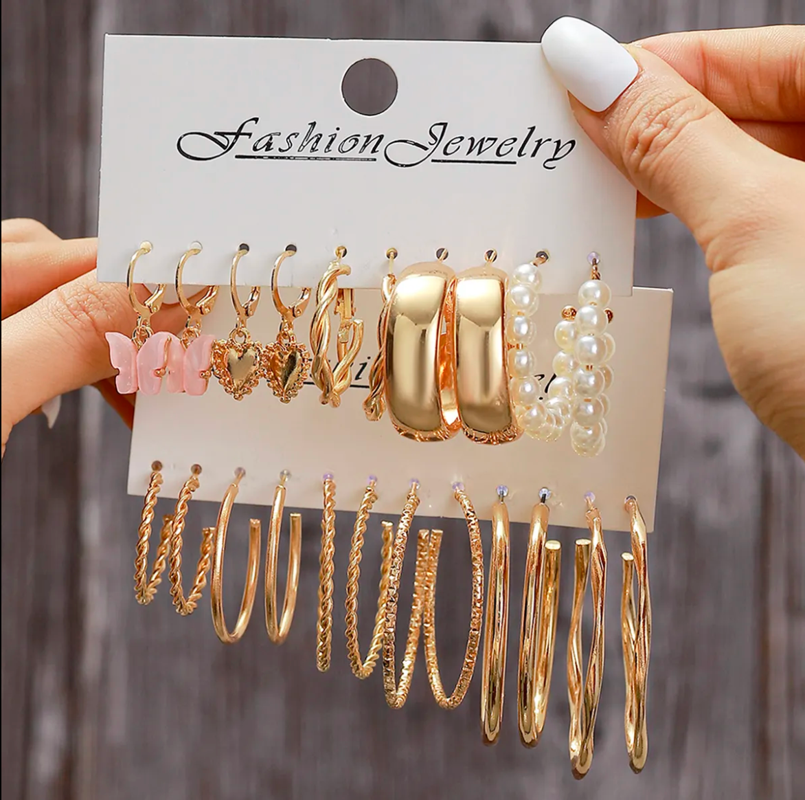 12-Pair 18K Gold-Plated Earrings Set | Stud & Hoop, Pearl, Butterfly Design